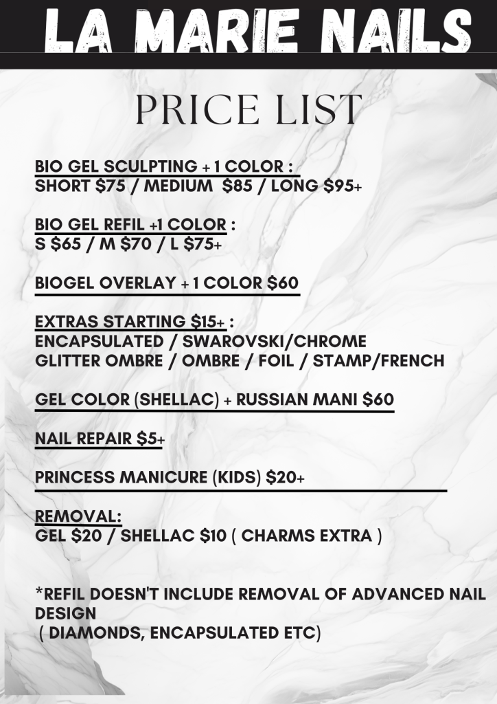 As a long time customer of Marija, I feel that she provides superior nail services by far. Her talent and creativity always leaves me as a happy customer. Her designs are unique and the quality of her materials and work is exceptional. If you're looking for beautiful European designs, the sky is the limit at La Marie Nails. Highly recommend!